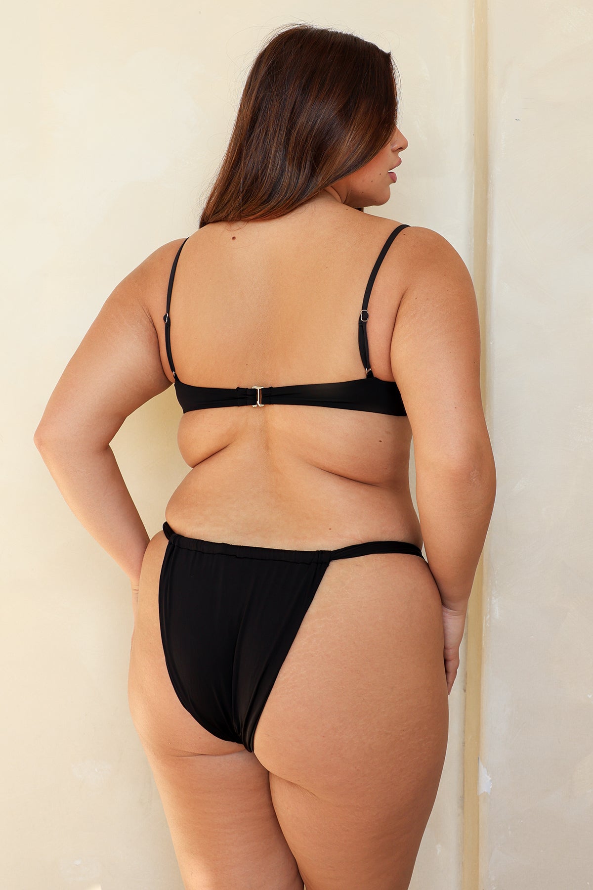 The Black Emma Underwire Super Cheeky Set brings a breath of fresh air to your wardrobe-featuring our Emma top in a graceful underwire silhouette and the tropics bottom in a flirty super cheeky cut. Rendered in the classic Black tone, this set is perfect for capturing that springtime sparkle from morning to golden hour.