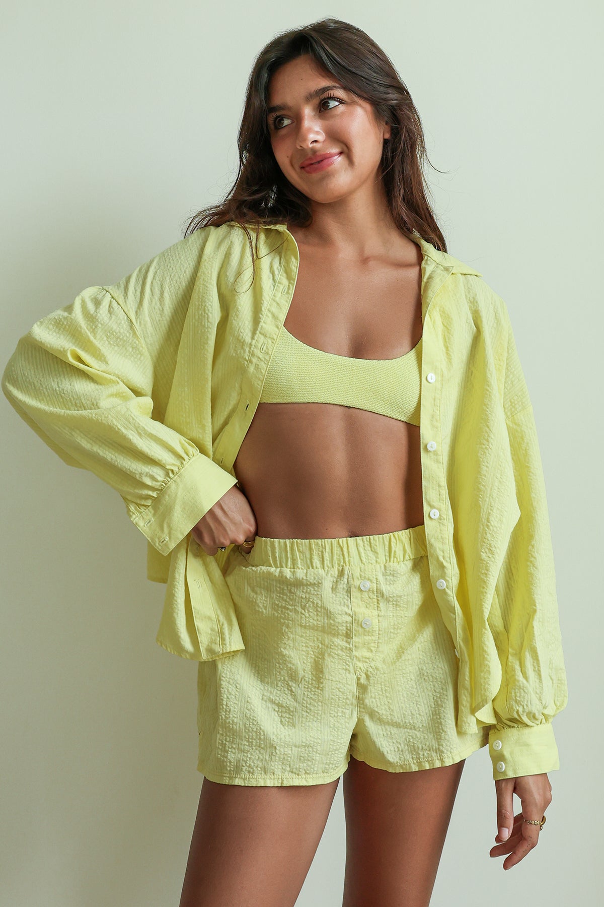 A breathable cotton long sleeve button-down that’s easy to wear as a standalone piece or layered over your favorite bikini. Pair with our matching Sundaze Boxer Shorts.